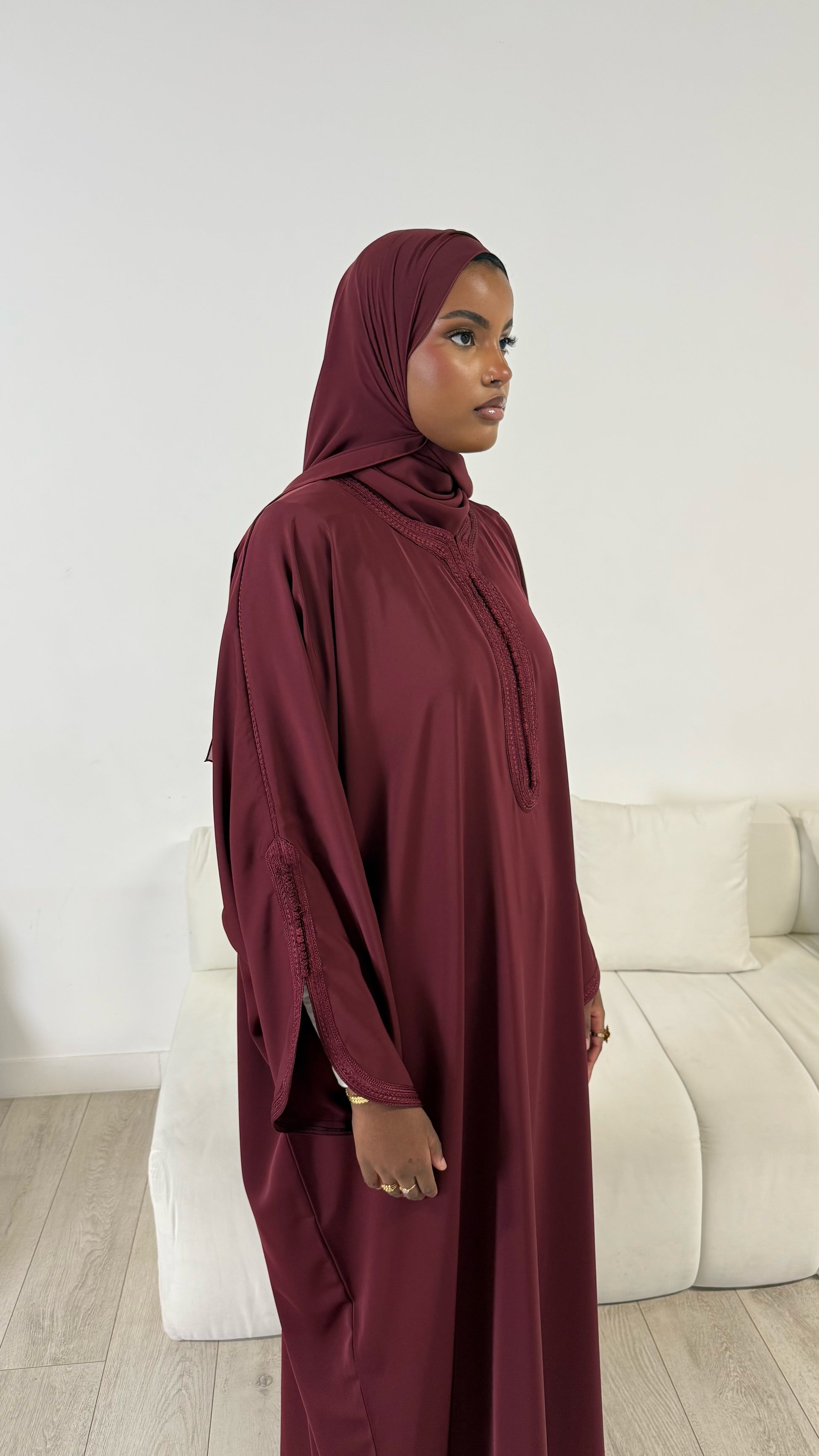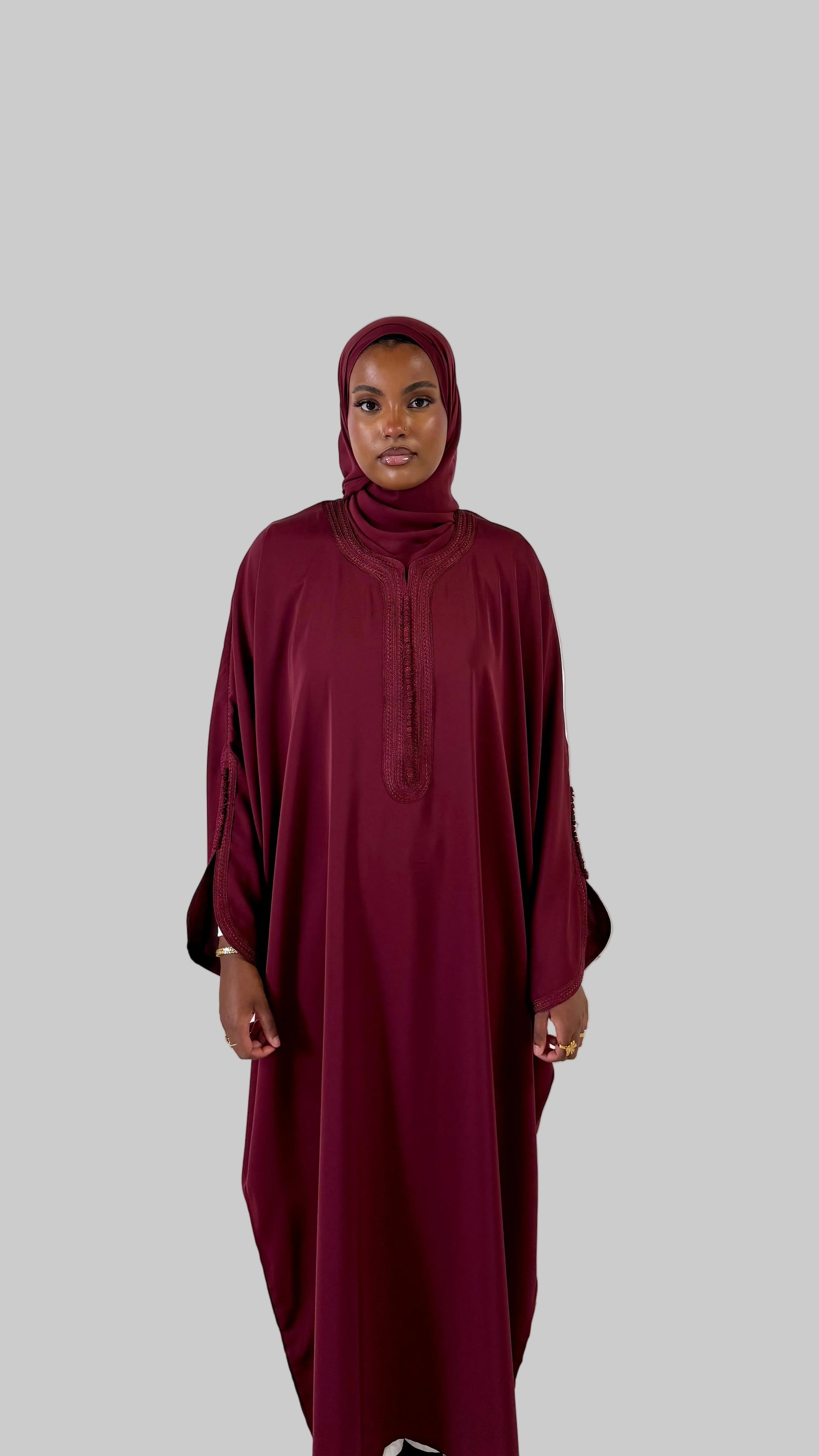 Pre-Order Moroccan Embroidered Abaya Burgundy